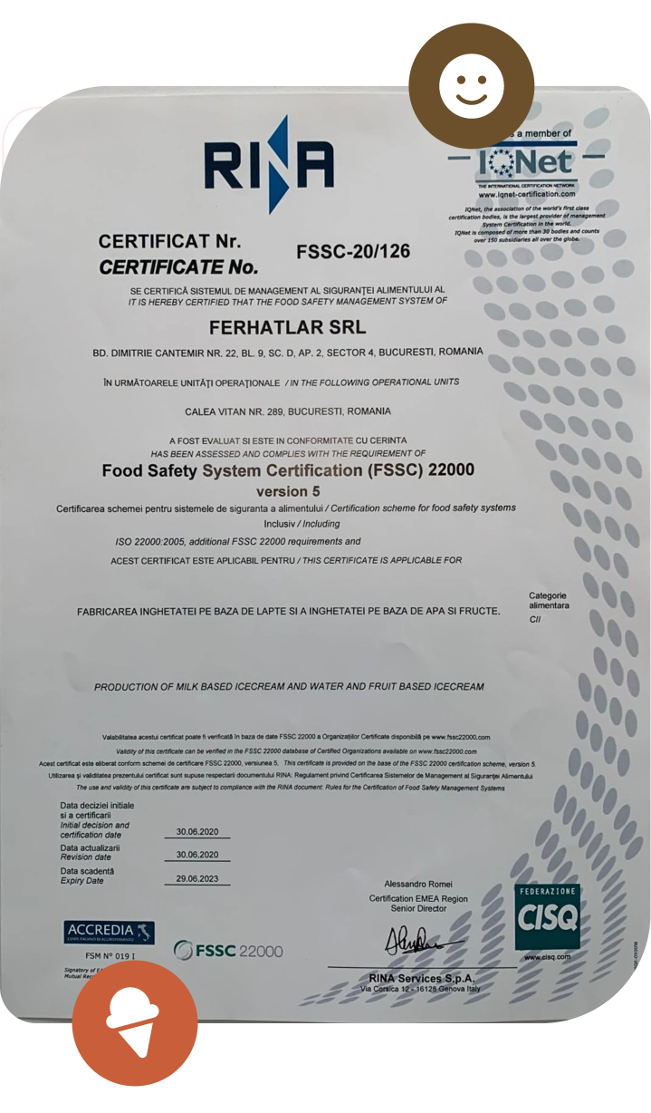 ARGELATO aplică standardele FSSC 22000 pe tot parcursul procedurilor, de la producție la vânzare.